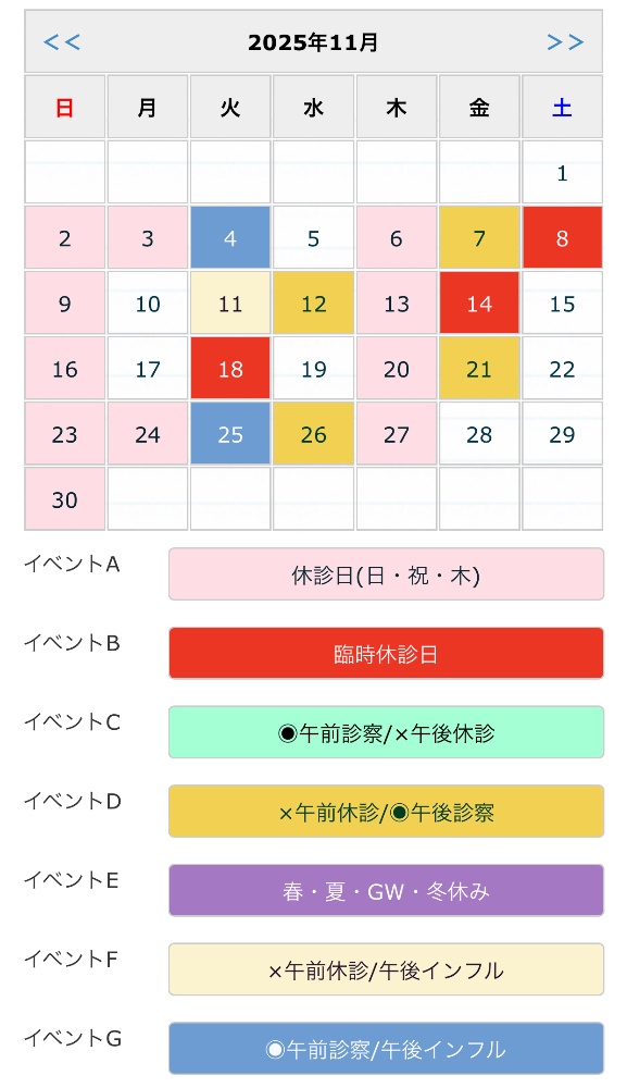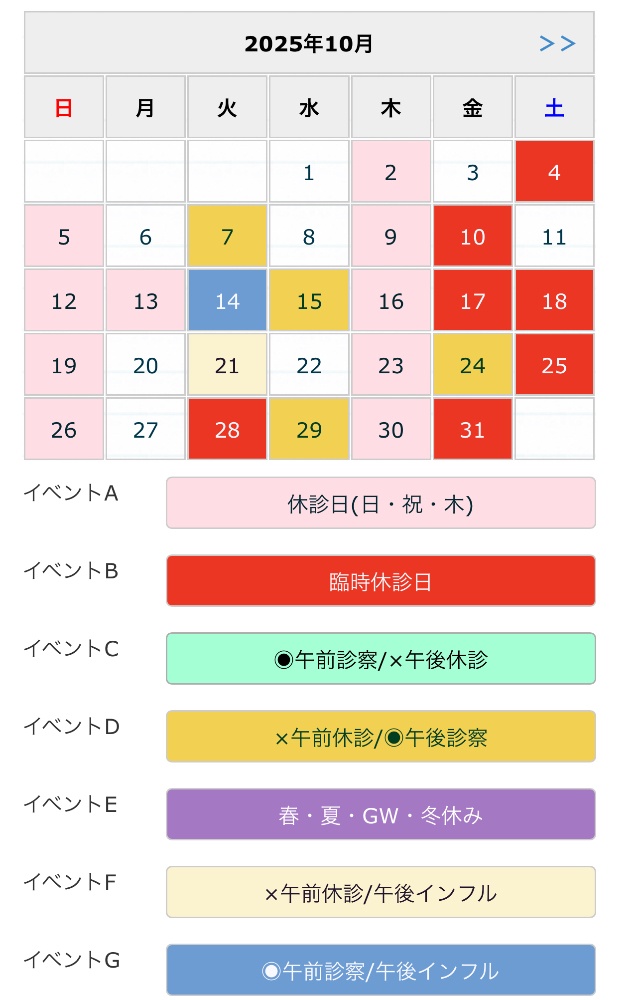 ◉ 日曜・祝日・木曜・土曜午後は休診です。