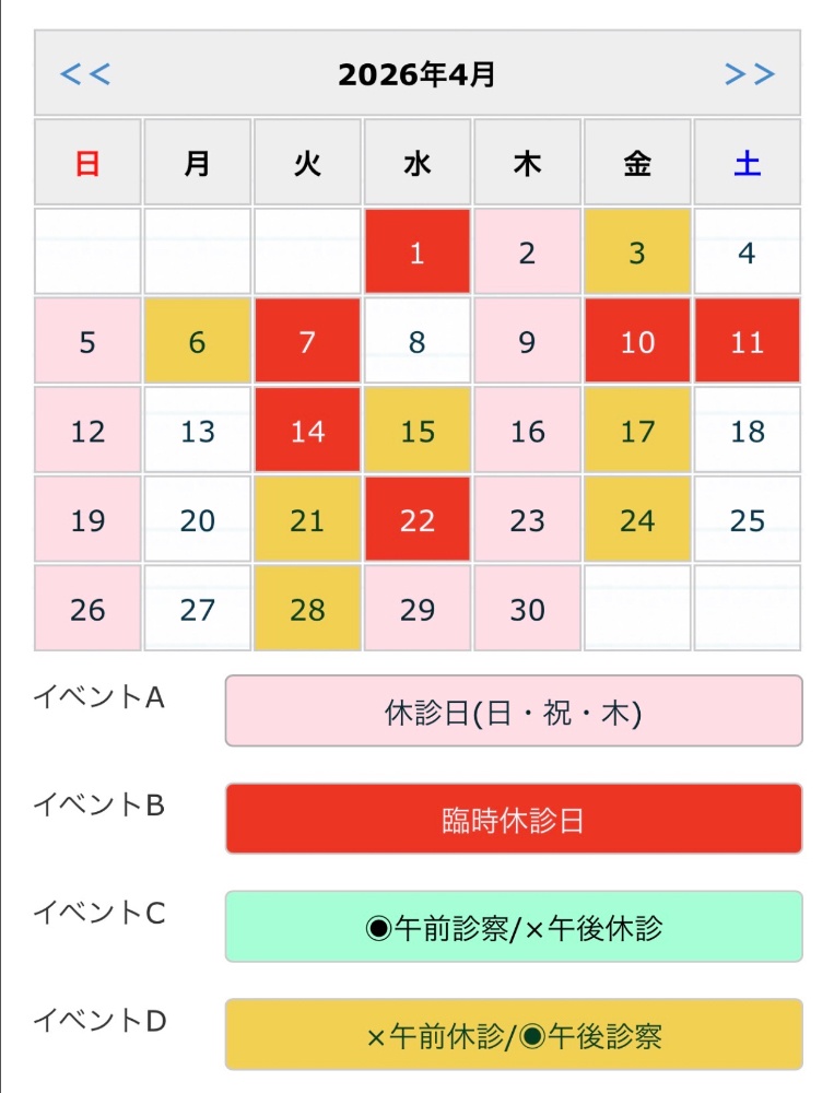 * 4月は特に学校健診出向や諸事情で不定期に休診してることが増えています。ご了承の程お願いします。
