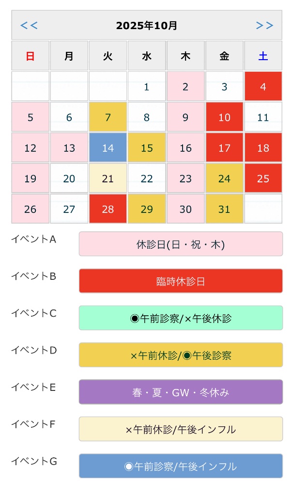 ◉ 日曜・祝日・木曜・土曜午後は休診です。